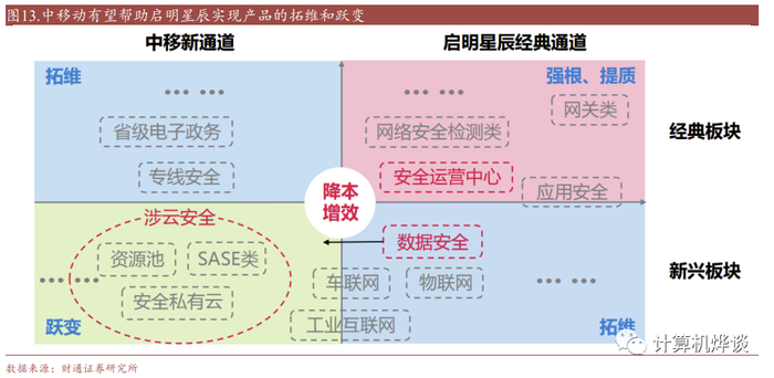 具体来看,启明星辰有望依托中国移动集团雄厚的品牌实力、技术能力、创新场景、渠道资源等,把握行业发展机遇,积极打造网络安全产业的国家队和主力军,实现跨越式发展。品高软件与中国电信深度合作,深耕广东并借助运营商渠道拓展全国市场,未来合作深度有望不断强化,受益于天翼云的高速发展,作为其私有云信创核心伙伴的品高云有望带来业绩高弹性。