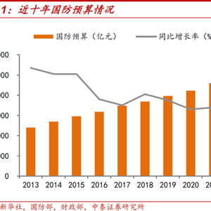 我国军工产业链主要涵盖航天、航空、船舶、兵器、电子信息以及核工业六大业务领域,国家严格管理的计划性采购和较高的准入门槛使得行业形成了较为稳定的竞争格局。军工行业与国家安全息息相关,国防支出的增加主要用于“十四五”规划安排,建设现代化后勤,巩固拓展军队改革成果。