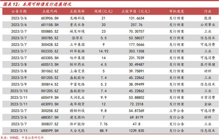 本周共18家公司发布可转债最新进度情况,其中14家公司发布可转债发行预案,1家公司发布上市公告,3家公司发布发行公告。