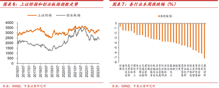 本周上证综指和创业板指数收跌。截至3月10日收盘,上证综指下跌2.95%,报收3230.08点;创业板指下跌2.15%,报收2370.36点。