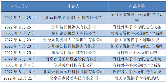 在资金的簇拥下,原本少人进入的赛道热了起来。据《每日经济新闻》记者不完全统计,2022年,获批上市的骨科手术机器人至少10款,其中关节手术机器人占了半壁江山。处于临床试验、临床前研发检测的企业有数十家,其中既有史赛克、美敦力、捷迈邦美这样的跨国企业,也有天智航、微创医疗(HK00853,股价20.5港元,市值375亿港元)、铸正机器人等实力玩家。