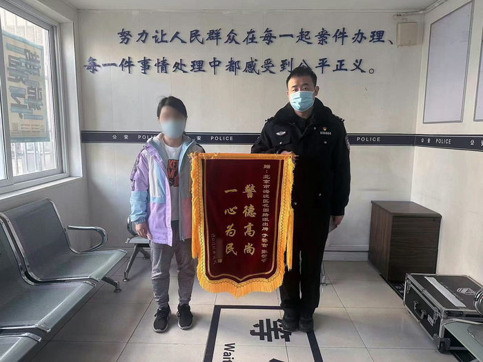 而前一天,3月8日赵敏(化名)女士专程来到海淀公安分局花园路派出所送锦旗,感谢民警帮自己找到遗失的背包。