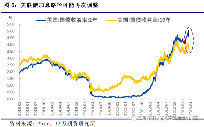 SVB遇到流动性问题,美股银行股连续2天大跌,不只是引发了市场对于美国银行也健康状况的关注,更是使市场重新思考未来美联储的加息路径。金融是现代经济的核心环节,金融机构如果出问题,那么就会影响实体企业和居民的信贷增长就,进而对整体的经济增长产生较大拖累。美联储大幅加息是为了抑制通胀,如果美国经济因为银行的问题陷入衰退,那么通胀的压力可能会很快成为通缩的压力。因此美联储的加息路径将可能重新调整。2年期美国国债收益率反映了市场对于未来一定时间美联储加息的预期,3月9日和3月10日两天2年期美国国债收益率下行44bp,过去几十年的时间里面都较为罕见。此前市场对未来加息路径的关注还在通胀上面,美联储主席鲍威尔本周面对国会问询的时候还表示可能在3月的议息会议中加息50bp。但是随着SVB的倒闭,未来美国银行业、美国金融系统和金融市场的不确定性都大幅增加。监管机构如何应对,特别是对那些负债端不稳定的银行采取什么措施,可能将成为未来一段时间影响金融市场和美联储加息路径的关键。