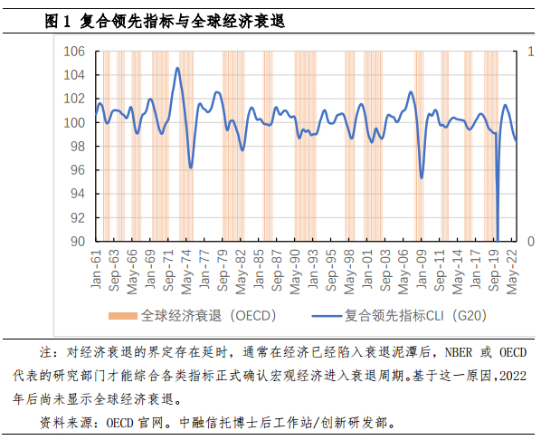 复合领先指标(CLI)对GDP特别是其经济增长的拐点具有很强的指示性。图1展示了G20的复合领先指标(CLI)与全球经济衰退1961年至2023年的历史数据,CLI的拐点对于宏观经济衰退具有极强的指示性,特别地,CLI快速下降往往预示着经济衰退即将发生。