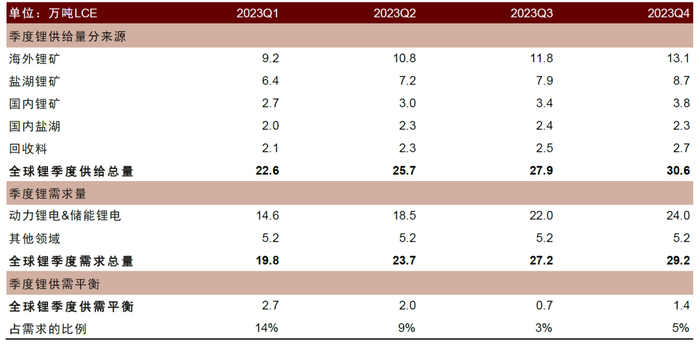 图表13:全球锂供需平衡(2018-2025E)