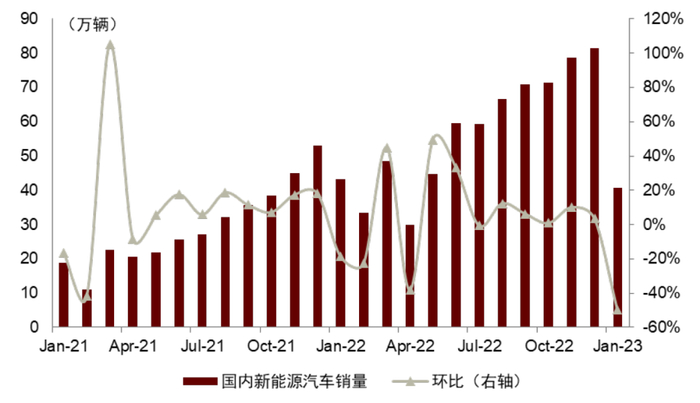 二是锂盐价格上涨带来终端新能源汽车的普遍涨价,或对终端消费形成抑制,根据中汽协,11/12月国内新能源汽车销量为78.6万辆/81.4万辆,环比+10.1%/+3.6%,与往年的旺季相比销售环比增长动能偏弱,我们认为这可能受到疫情扰动的影响,但是主要车型的涨价对此的影响也不可忽视。