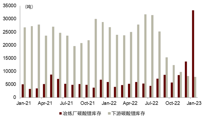 图表23:下游企业采购减少导致锂盐厂库存累积