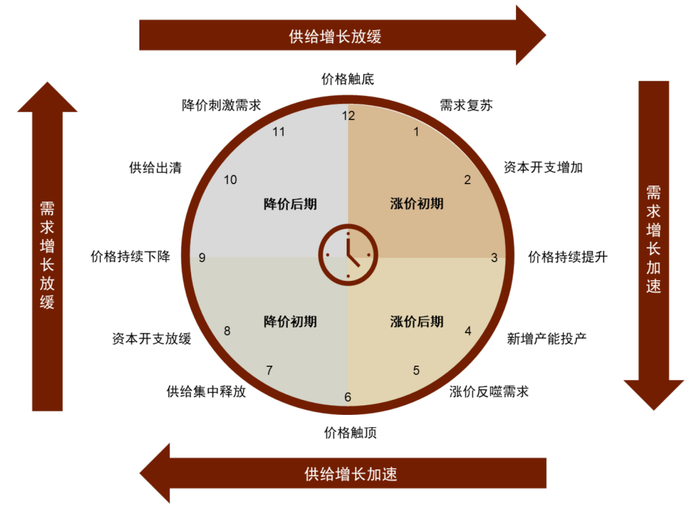 ►降价后期:此阶段的典型特征为供给已经开始出清但是需求仍然低迷,供需双弱但供给增速更快。降价进入后期的标志在于价格已经跌破高成本资源的成本曲线,开始导致供给侧的出清,锂资源项目的减产甚至停产变得逐渐广泛。此时,锂价进入底部区间,产业链各环节库存皆处于低位,价格的下跌刺激需求复苏,或叠加需求侧的事件性驱动,带动价格触底,进入下一轮上涨周期。