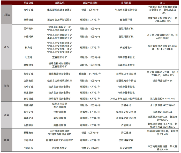 图表31:国内潜力地区锂资源项目梳理