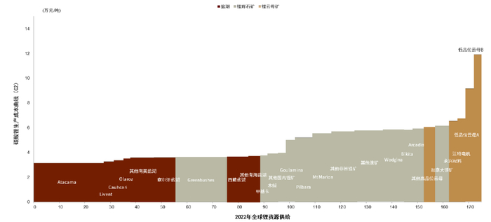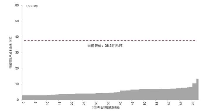 图表5:当前锂价已大幅高于绝大多数资源成本曲线