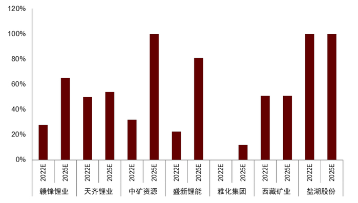 图表41:国内锂业公司未来的资源自給率预期提升