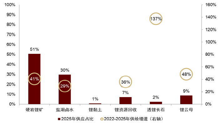 图表34:分类型锂资源供给占比及2022-2025年增速