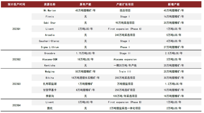 3.1 供给拐点:2023年将是绿地锂资源项目的投产加速的转折点