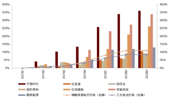 图表21:国内主要电池企业存货价值累积涨幅