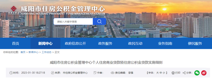 1月30日,咸阳市住房公积金管理中心发布了“个人住房商业贷款转住房公积金贷款实施细则”。