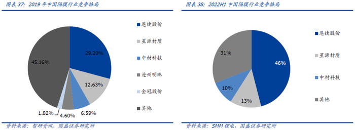 4、隔膜:行业集中度稳步提升,中国隔膜企业市占率全球领先