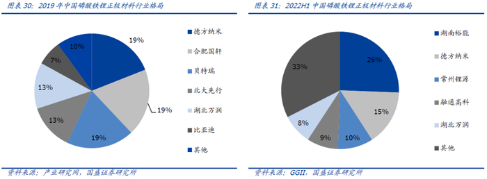 1、正极:磷酸铁锂行业集中度稳步提升,三元材料集中度较低