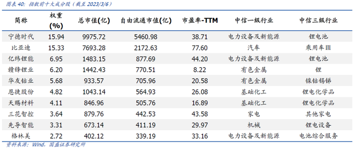 2.2 指数成分股:聚焦新能电池产业龙头股票