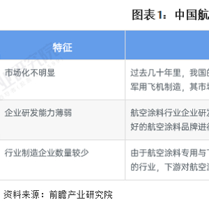 目前,我国航空涂料行业呈现出市场化不明显、企业研发能力薄弱、行业制造企业数量较少,行业发展现状亟待改观。