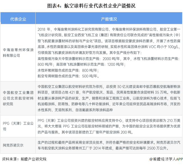 2、代表企业航空涂料产能现状