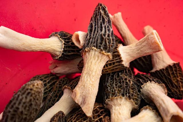 羊肚菌褐色的菌盖凹凸不平、满是褶皱,形似羊肚。羊肚菌本身自带一种动物性的肥美口感,因此常被人称为“素中之荤”,广受食客喜爱。