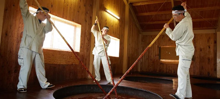 在这个过程中,大豆和小麦中的氨基酸被完全激发出来。谷物的鲜香也随着发酵过程交织在一起。