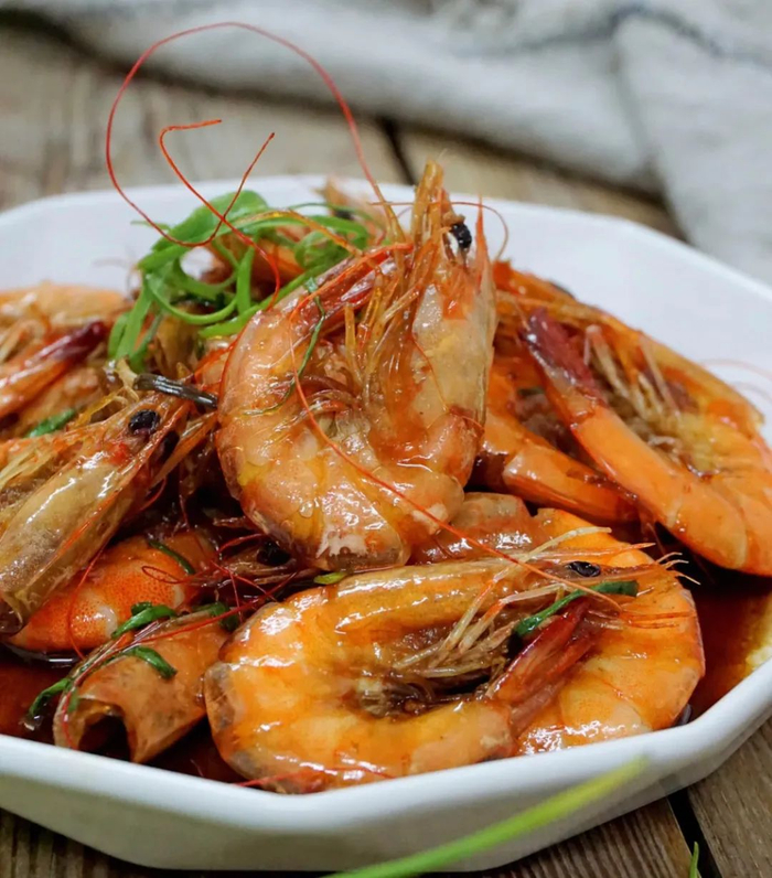 几只白虾,处理过后,加上2~3勺冈田酱油翻炒,倒入适量白开水焖煮5分钟左右,收汁关火,一道好吃到吮指的酱油炒虾就出锅啦,色香味俱全。