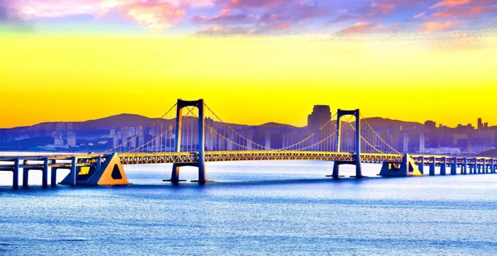 大连星海湾跨海大桥:大连市地标式建筑,是中国国内首座海上建造锚碇的大跨度双层悬索桥