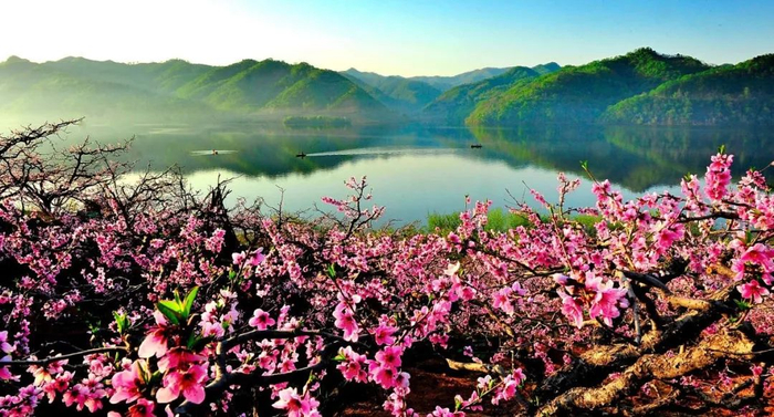 丹东河口风景区:桃花岛位于辽宁省丹东市宽甸县长甸镇河口自然生态旅游区.每年“五一”期间,当地会举办桃花节,全国各地来这里玩的游客非常多。