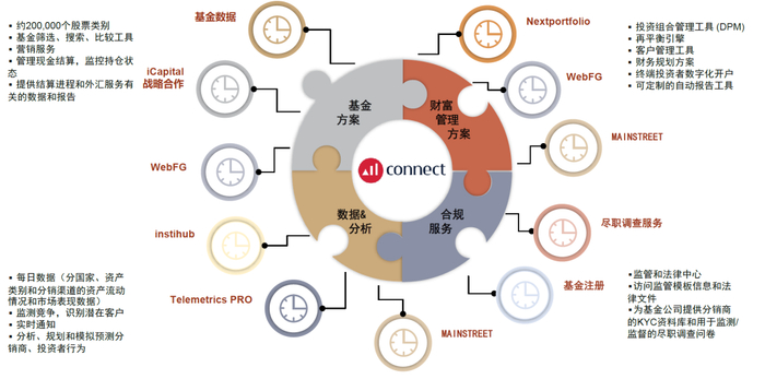 图表23:Allfunds Connect提供基金方案、数据&分析、财富管理方案、合规服务四项增值业务