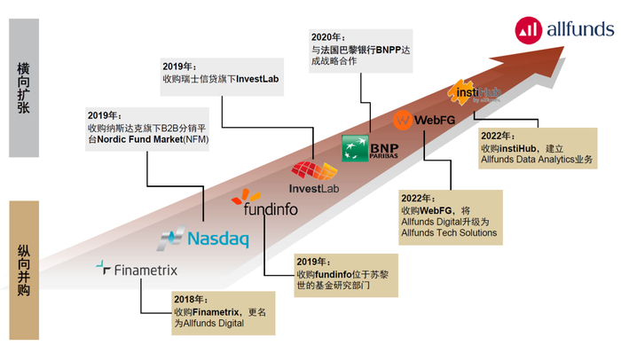 图表16:Allfunds积极进行横向及纵向并购扩张,不断巩固自身竞争优势