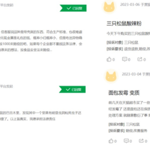 同样的投诉重灾区,还有休闲零食企业三只松鼠(国内主要运营主体:三只松鼠股份有限公司;股票代码:300783.SZ)。截止2023年3月10日,三只松鼠在黑猫投诉上共累计投诉1990条,近30天内投诉共有27条,日均近一条投诉,最近的五条投诉中,四条均与食品安全相关。