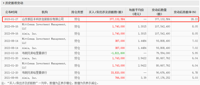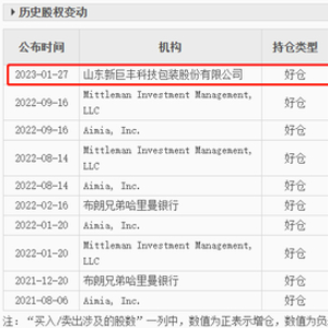 这也意味着,从2023年1月27日开始,新巨丰已经成为纷美包装的最大单一机构股东。