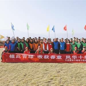 这是中铁建安工程设计院有限公司组织的“植此青绿,收获春意;风华十载,共筑未来”学雷锋义务植树活动。这队志愿者大约有80人,都来自该公司西安片区,他们中有党员、团员及群众。