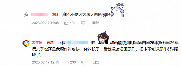 理想前景固然美好,不过,《兄坑》一来便将动画设置为“IF线”,让因动画入坑的粉丝接受这一点并不容易,最终还需落到老生常谈的内容上。IF线成功的前提是主线故事、角色塑造的完整,目前部分漫画读者在讨论《兄坑》更新频率,有动画观众反馈动画细节尚未补全、人物塑造ooc等问题,也有忠实粉丝表示喜爱动画的改动。