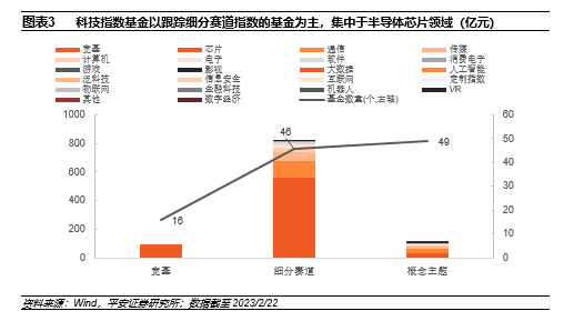 2.1 科技指数基金:以跟踪细分赛道指数的基金为主,集中于半导体芯片领域