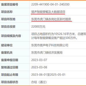 这个项目的建设单位,也就是通俗所说的投资方,为东莞市猎声电子科技有限公司(下称猎声电子)。