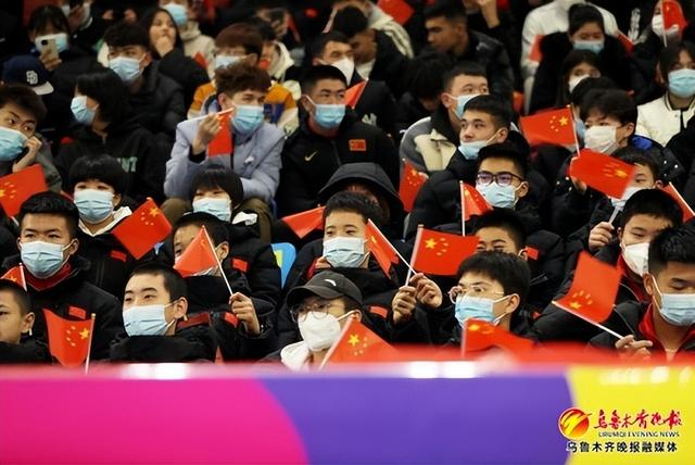 3月13日,在新疆冬季运动管理中心举行的2022-2023全国速度滑冰锦标赛、冠军赛上,观众正在为运动员加油。记者石磊摄