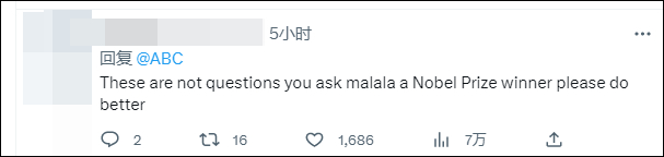 马拉拉本人在推特上转发了她被坎摩尔被提问的视频,配文道:“善待他人。”