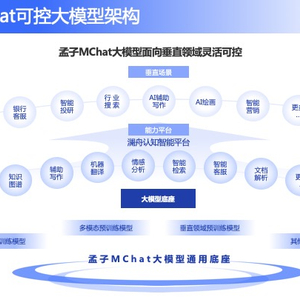 孟子MChat可控大模型强调了其本身“可控”的特色——模型能力相较于其他同类技术更为灵活,面向垂直领域、专业赛道落地会更加聚焦,可以根据行业、地域等需求做出快速调整。据周明介绍,孟子MChat可控大模型有以下几个特点:将陆续推出10B和100B参数级的大模型;具备聊天、问答、翻译、文本生成、信息抽取等多种能力;可融合搜索结果、领域数据和知识图谱;对功能、风格、人类认知等方面具可控性。