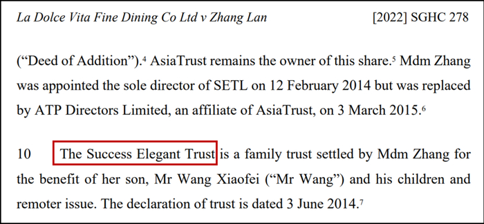 新加坡法院审理了CVC提出的任命接管人的申请、并于2022年11月2日作出了判决,正是在这份判决书中,张兰的家族信托被曝光于众。