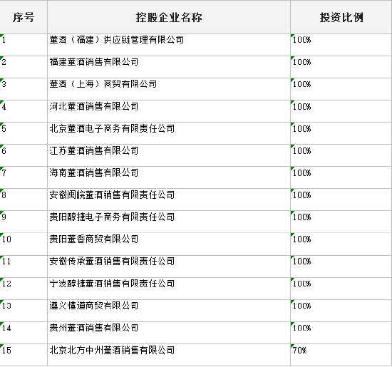 酒业内参查阅天眼查发现,由董酒股份实际控股的企业有15家,涉及的市场范围包括福建、上海、河北、北京、江苏、海南、安徽、浙江、贵州等9省市。