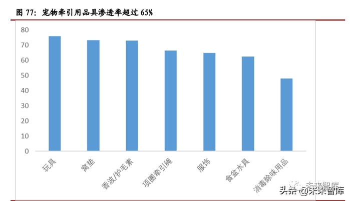 立法规定明确,牵引用具高渗透。《中华人民共和国动物防疫法》(2021 年修订) 将携带犬只出户佩戴犬牌并系犬绳列为强制事项,宠物牵引用具将成为饲养宠物 的刚需产品。2021 年,宠物牵引用具以 66.5%的渗透率,成为宠物犬用品中渗 透率较高的细分品类之一。