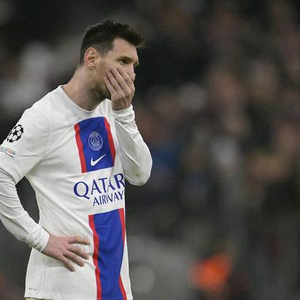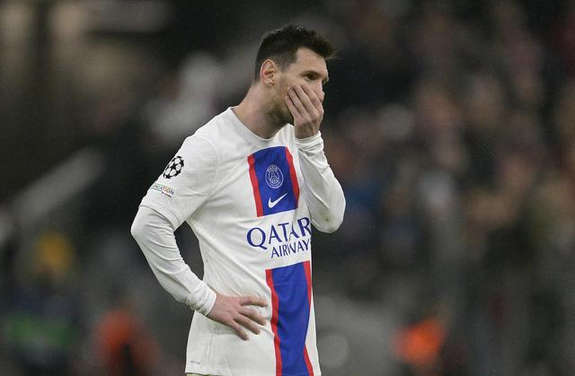 梅西率领的巴黎被拜仁淘汰,梅西赛后离开球场满脸失落 图据IC photo