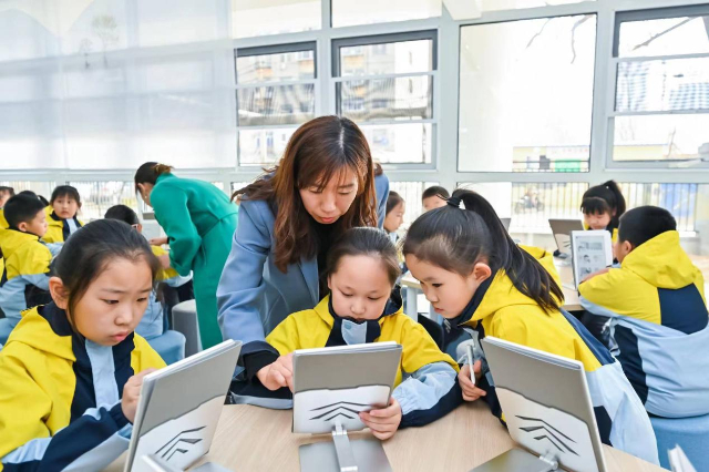 学校教师王双介绍,长期以来,由于课外书籍数量有限,容易出现学生读不到自己想读的书等情况,有了智慧阅读本之后,学生人手一本,真正实现了共读一本书。此外,在师生共读时,学生可以拿着特制的笔在墨水屏上写下问题的答案或画出自己的想法。随后,老师就可以通过小程序,掌握学生的阅读情况,并通过点赞等方式鼓励学生。