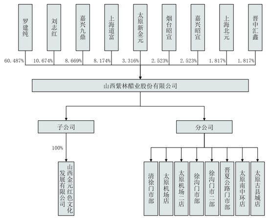 紫林醋业前身为成立于2000年的金元老陈醋,由罗建纯、刘志红夫妇出资60万成立。2006年更名为山西紫林食品有限公司;2012年整体变更为紫林醋业。把一个濒临关门的小醋厂,做成全国知名的食醋品牌,罗建纯只用了不到20年时间。