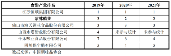 据中国调味品协会数据,紫林醋业的食醋产量规模常年居于行业第二,排在恒顺醋业之后,但目前来看,同为行业头部的紫林醋业与恒顺醋业,还有相当大的差距。