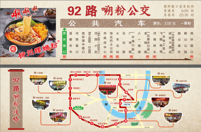 图为柳州2路和92路螺蛳粉“嗍粉公交线路”示意图。