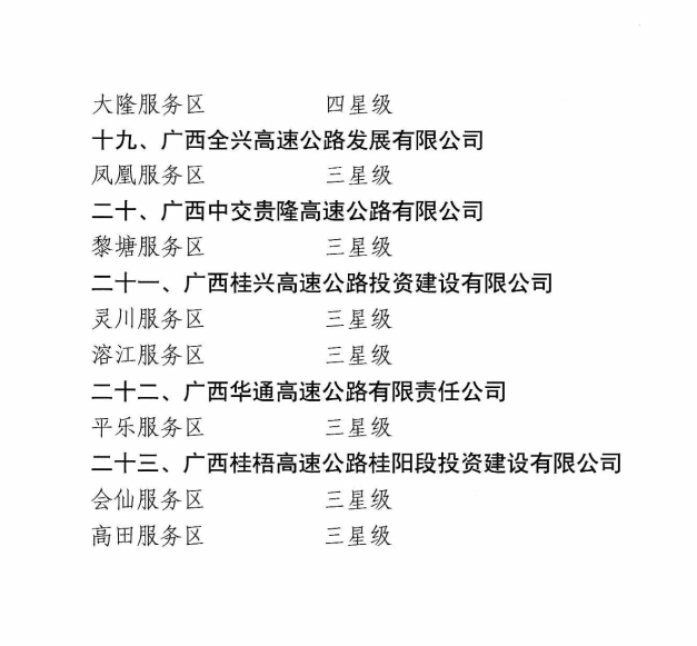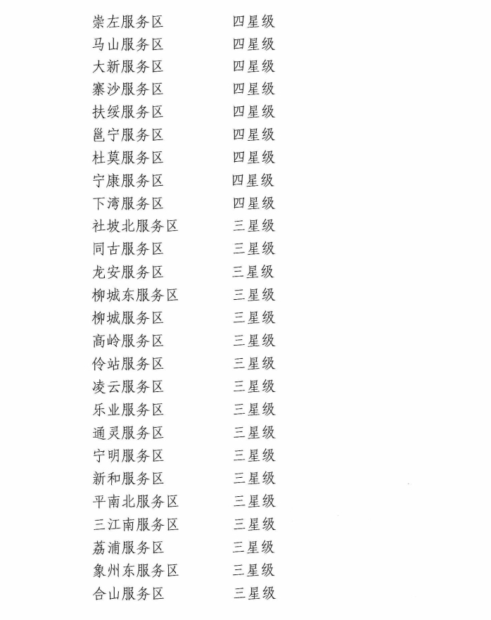 据了解,服务区星级评定活动每两年评定一次,评定结果有效期为两年。评定内容主要包括公共卫生间、公共场区、餐饮、便利店、加油(加气、充电)站、车辆维修站、客房、综合服务和基础管理等9大项目。评定等级分为三星级、四星级、五星级,等级越高表明服务区综合服务能力及管理水平越高。星级服务区不仅可以为过往司乘人员提供温馨、便捷、舒适的服务,还实现了人文、景观、公路和谐相融。