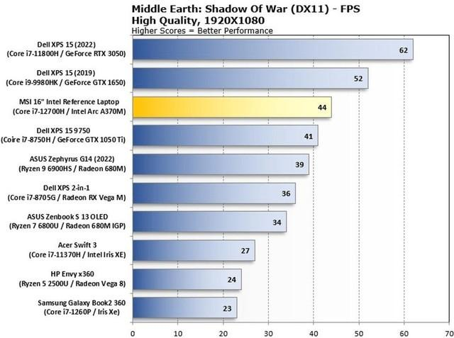 游戏性能方面可以看到A370M虽然与RTX 3050有着不小的差距,但是成绩要高于GTX 1050 Ti显卡,差点就能追上GTX 1650了,对付一般的游戏显然都没有问题,甚至一些如绝地求生、原神之类的大型3D游戏中低画质也完全可以流畅运行,所以只要价格能够足够实惠,越来越多的A370M的笔记本会推出,足够让AMD及NVIDIA头痛一阵的。